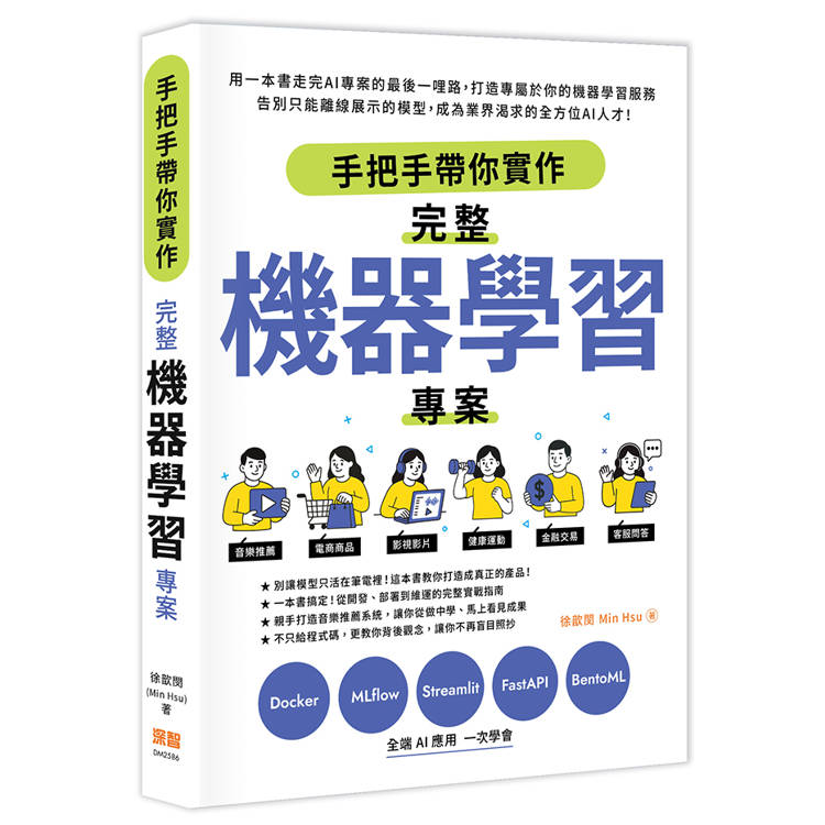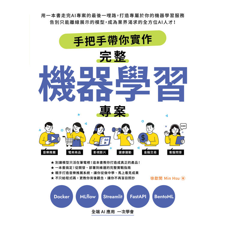 本書將從機器學習的完整生命週期談起,並以「音樂推薦系統」作為實戰專案,親手整合 Docker、PostgreSQL、MLflow、FastAPI、BentoML 等一系列主流工具,你會發現,這些工具並非獨立的孤島,而是一個環環相扣、彼此協作的生態系。