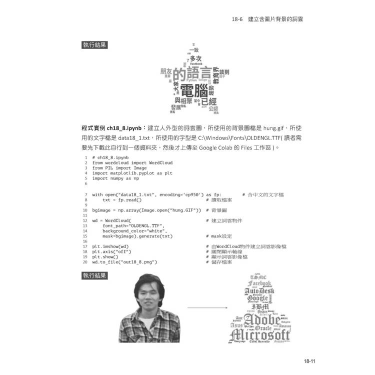 後半部內容從 CSV 處理、Excel 整合、詞雲、圖表、爬蟲、資料可視化,一直到: