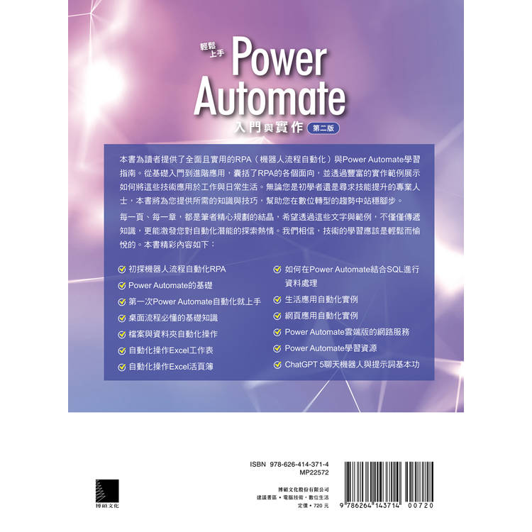 本書為讀者提供了全面且實用的RPA(機器人流程自動化)與Power Automate學習指南。從基礎入門到進階應用,囊括了RPA的各個面向,並透過豐富的實作範例展示如何將這些技術應用於工作與日常生活。無論您是初學者還是尋求技能提升的專業人士,本書將為您提供所需的知識與技巧,幫助您在數位轉型的趨勢中站穩腳步。