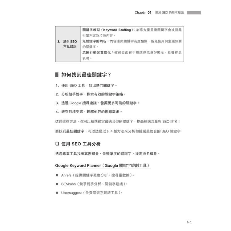 從關鍵字研究、內容架構、網頁索引,到搜尋意圖的分析,逐步掌握搜尋引擎判斷內容價值的依據,同時建立持續帶來自然流量的基礎觀念。