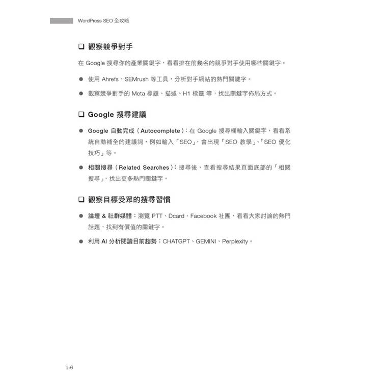 ☑ 掌握站內、站外 SEO 技術與內容優化方法。