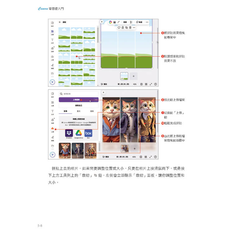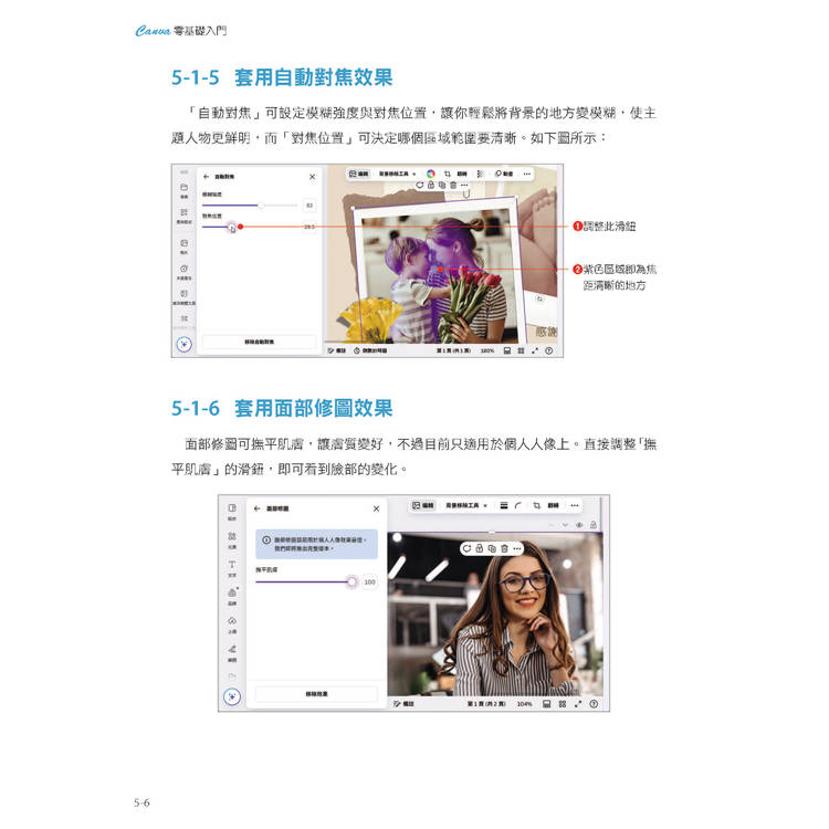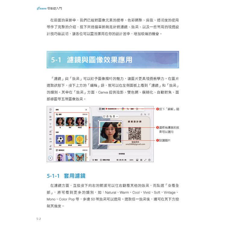 從帳戶註冊、範本選擇,到文字、圖像、動畫、影片、簡報、社群行銷設計,循序漸進,幫你打好設計根基。