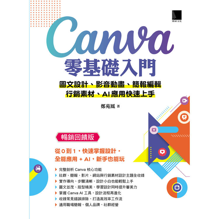 不論你是初學者、職場工作者、自媒體經營者,還是教育、創業或行銷領域的設計需求者,本書都可引領你掌握Canva的無限可能,讓你從設計門外漢,成為創意高手!