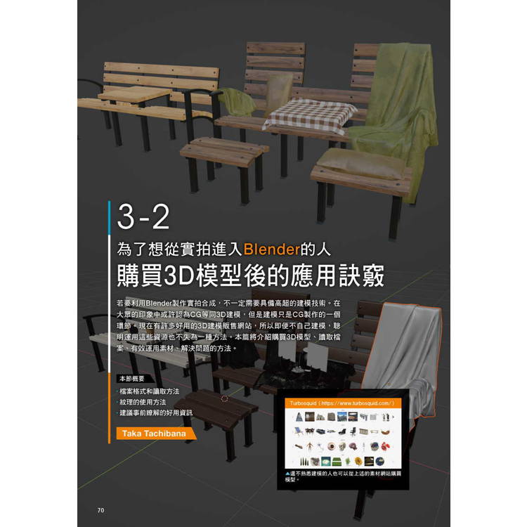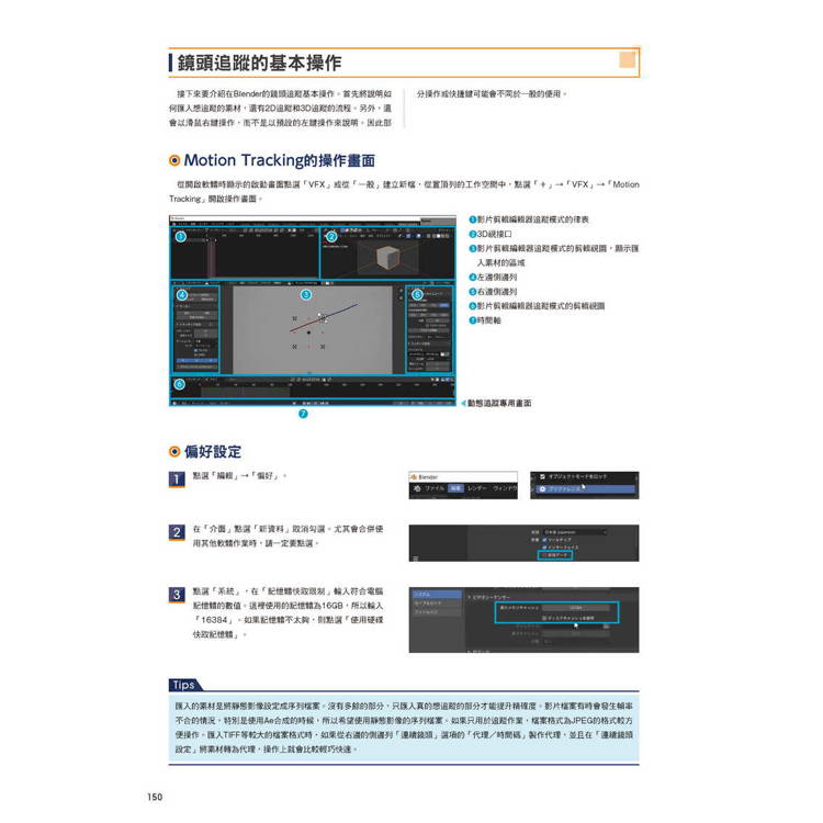 涵蓋完整工作流程:從基礎的3D概念、Blender介面操作,到進階的建模、材質、燈光、相機追蹤(Camera Tracking)以及最終的合成後製,提供全面的指引。