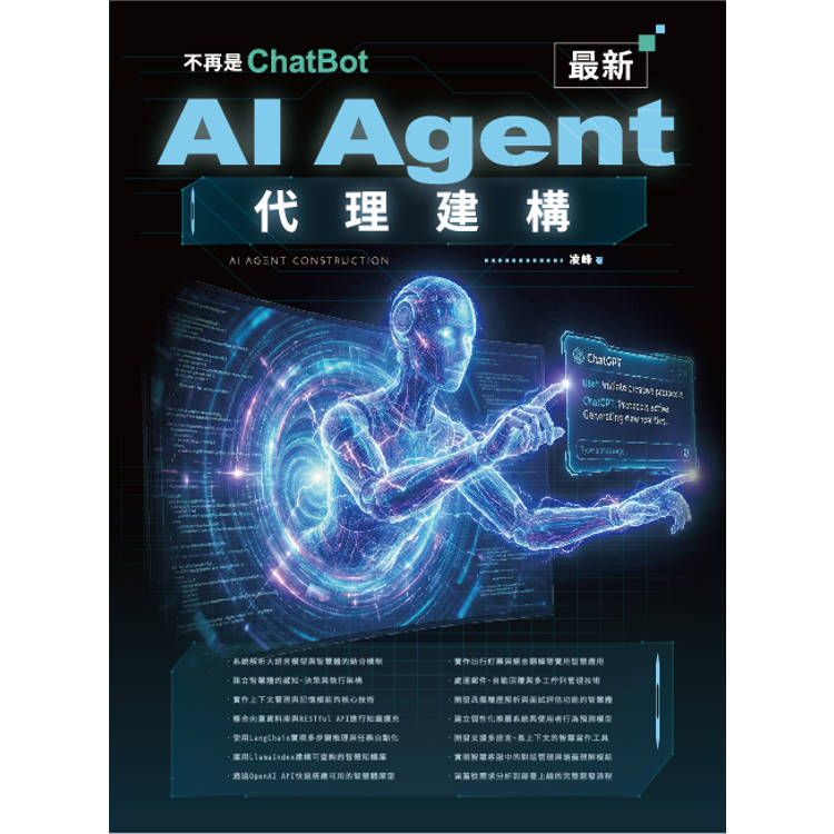 本書針對AI Agent開發的實際需求,從大語言模型的語言理解能力出發,說明智慧體的核心組成與開發架構,涵蓋記憶模組設計、上下文管理、語義查詢與任務執行等技術關鍵。內容橫跨LangChain、LlamaIndex、向量資料庫整合與OpenAI API實作,並透過郵件回覆、論文潤色、出行訂票與智慧客服等案例呈現LLM應用落地的完整流程。相較於僅介紹語言模型的入門書籍,本書更強調工具鏈的組合與系統層次的實現方式,適合需要從0到1實作智慧體應用的工程師與技術決策者。從開發環境設定、模組設計到部署測試,皆提供具體步驟與實戰細節,是整合語言模型與企業應用場景的實用參考架構