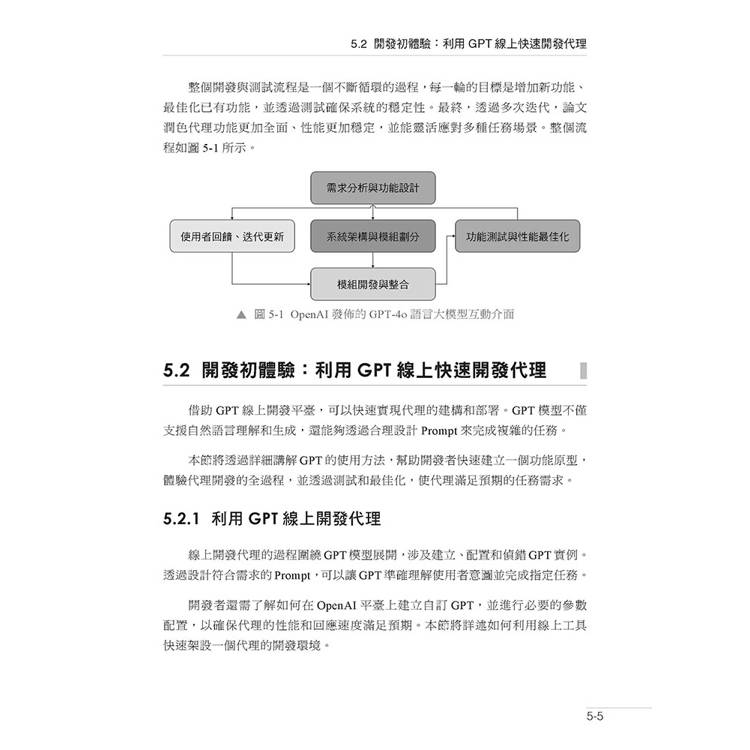 第5 章實踐如何利用OpenAI 的API 快速架設一個針對論文潤色的智慧體幫手,並掌握快速迭代開發的能力。