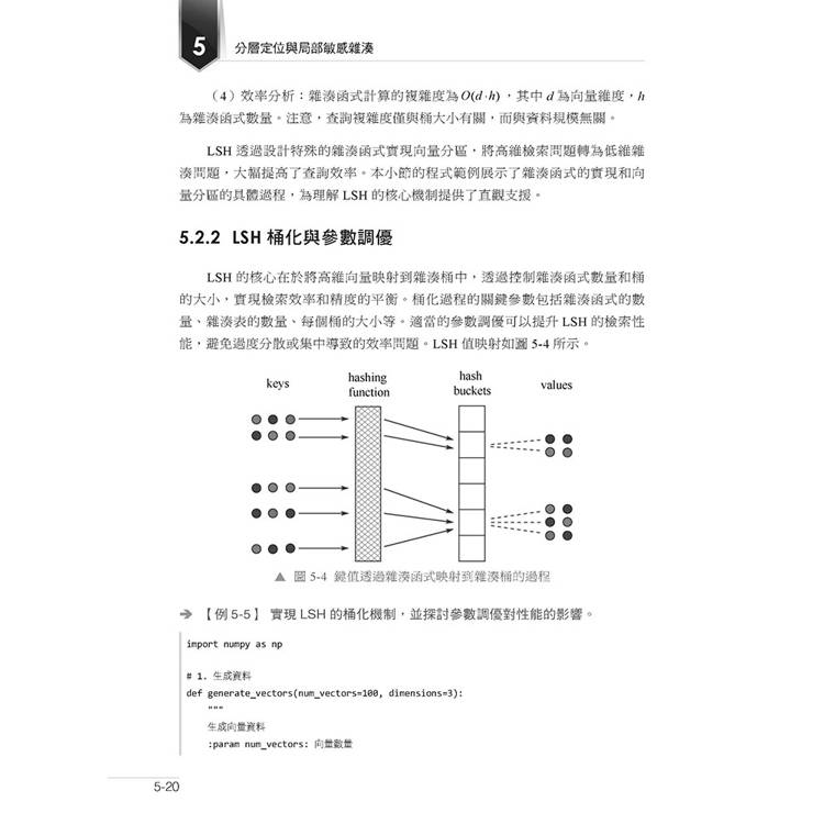 第2 部分:核心技術與演算法原理。涵蓋第3~6 章,全面講解了向量嵌入的原理、相似性度量方法以及高效搜索的核心演算法。本部分從靜態與動態向量嵌入出發,結合具體的距離度量方式,逐步引入諸如HNSW、局部敏感雜湊(LSH)等高效搜索演算法,並補充了BallTree 與Annoy 等演算法的適用場景與實現細節。透過這部分內容,讀者將深入掌握向量資料庫的核心技術鏈條。