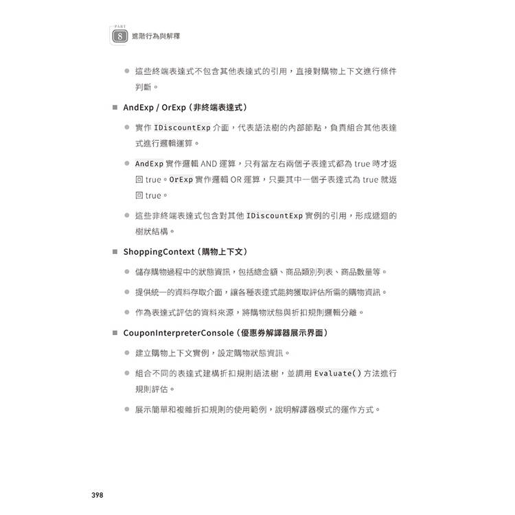 ✪ 三層次知識傳遞:維持觀念闡述、UML 圖解與 C# 範例的深度融合,確保從理論到實踐的學習一致性