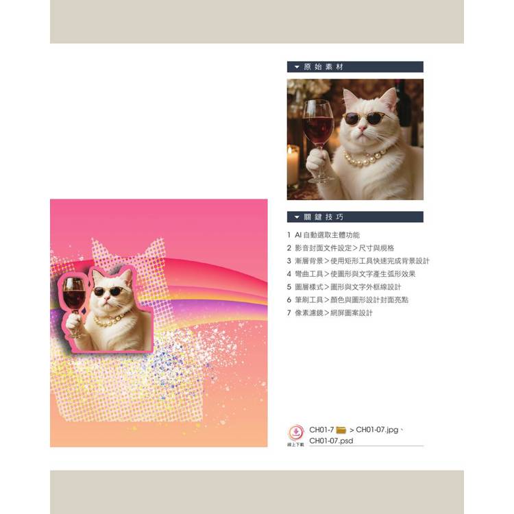 .無論是剛起步的影像處理初學者、新手設計師,還是想用設計打造個人品牌、推廣產品的人,都能跟著本書,把創意變成真正的成果,做出專屬於你的亮眼作品。
