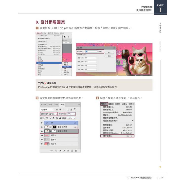 本範例與實務結合,介紹 YouTube 封面製作、影像裁切與剪裁遮色片的圖層形狀呈現。並運用使圖形與文字產生弧形效果彎曲工具、創意的圖層樣式、 像素濾鏡設計 YouTube 頻道封面。