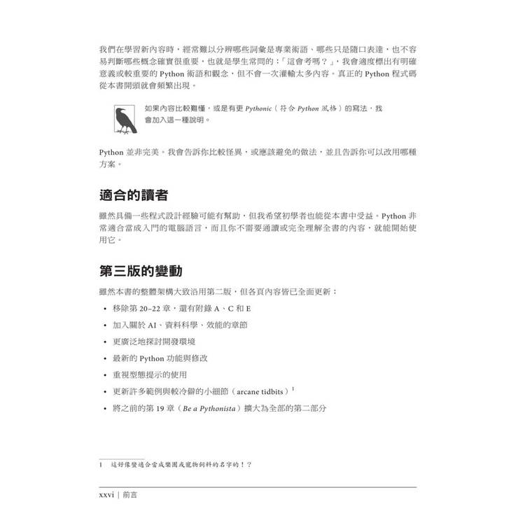 全新第三版,以更流暢的方式帶你掌握語法基礎、現代工具與AI模型,讓你在真實開發情境運用 Python更快、更精準。
