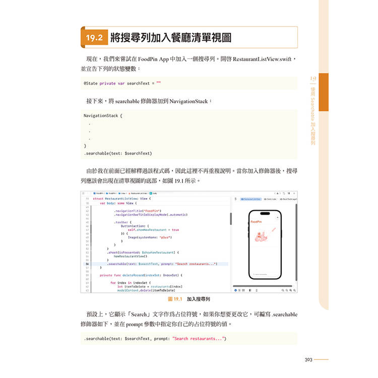 作者分享多年來的iOS開發經驗,並且集結廣受歡迎的iOS教學文章,以SwiftUI框架重新編寫,精心設計出30個章節。由基礎入門開始,逐步實作出具有精美UI及實用功能、支援雲端資料傳輸與深色模式的FoodPin App,而且FoodPin App完全支援新推出的iOS 26以及iPhone 17/17 Pro、iPad Pro。本書首先介紹Swift語言的觀念,再教導你使用Swift與SwiftUI建立你的第一個App,然後你會學到規劃App的原型,並且本書每一章中會針對iOS開發的各個面向提供提示、技巧以及許多需要親手操作的作業,最後你可以從無到有來開發出一個真正的App。本書也會教導你如何使用Xcode來佈局使用者介面,並熟悉iOS 26 SDK的基本API,跟著本書的內容學習,將可獲得真實開發App的體驗,且打好Swift程式語言的基礎,掌握程式開發的訣竅。本書專為Swift與iOS程式設計的初學者而撰寫,不論你是想學習新程式語言的程式設計師,或是想要將你的設計轉換為iOS App的設計師,這本書絕對是你的首選。