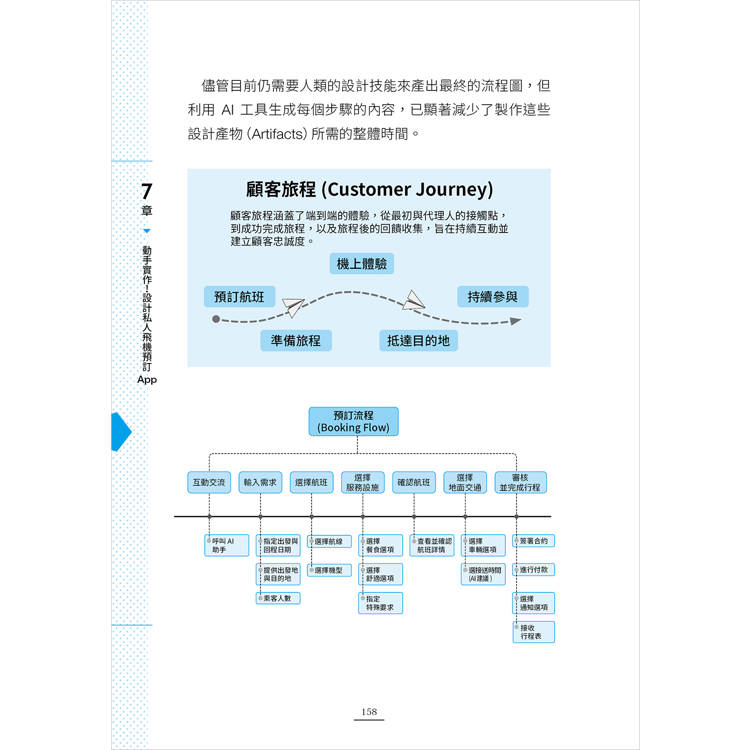 作者會以實例「預定私人飛機 App」為你示範整個設計過程中如何與 AI 協作。