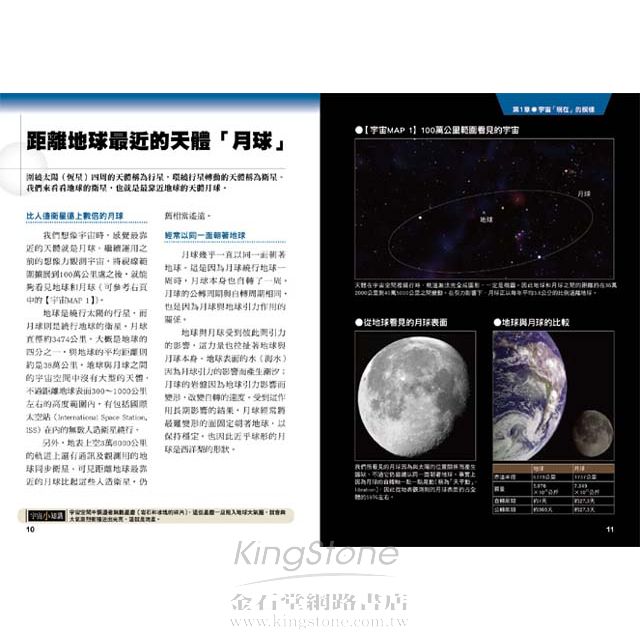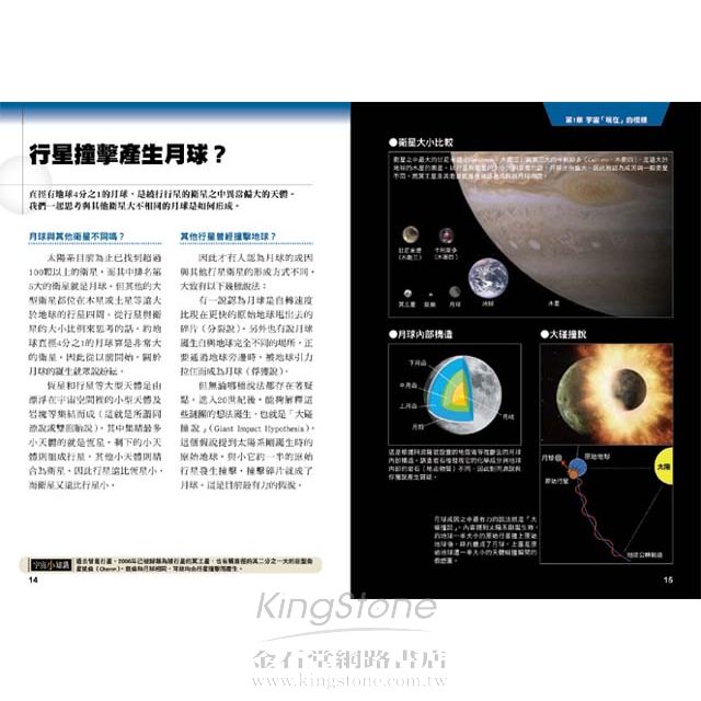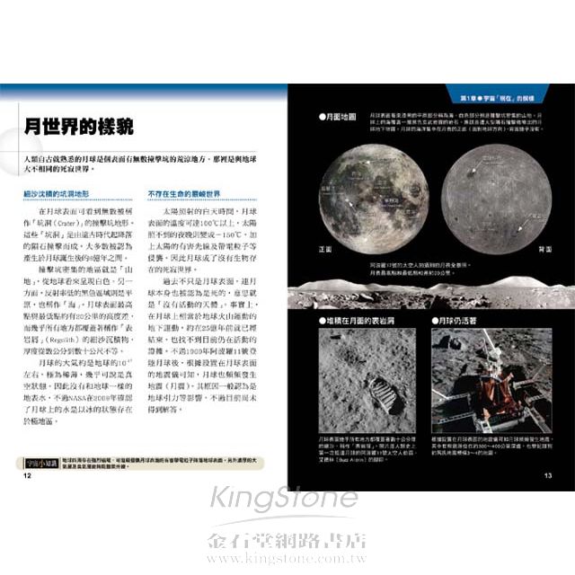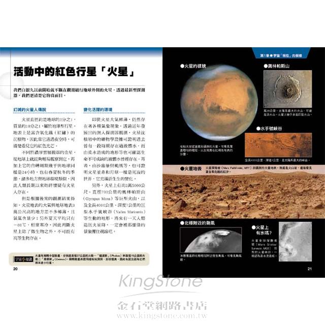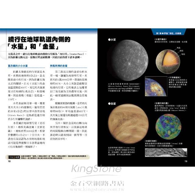 ◎書中照片以行星探測機或人工衛星、巨大望眼鏡拍攝而來,精細且高解晰度的畫面讓閱讀更添樂趣。