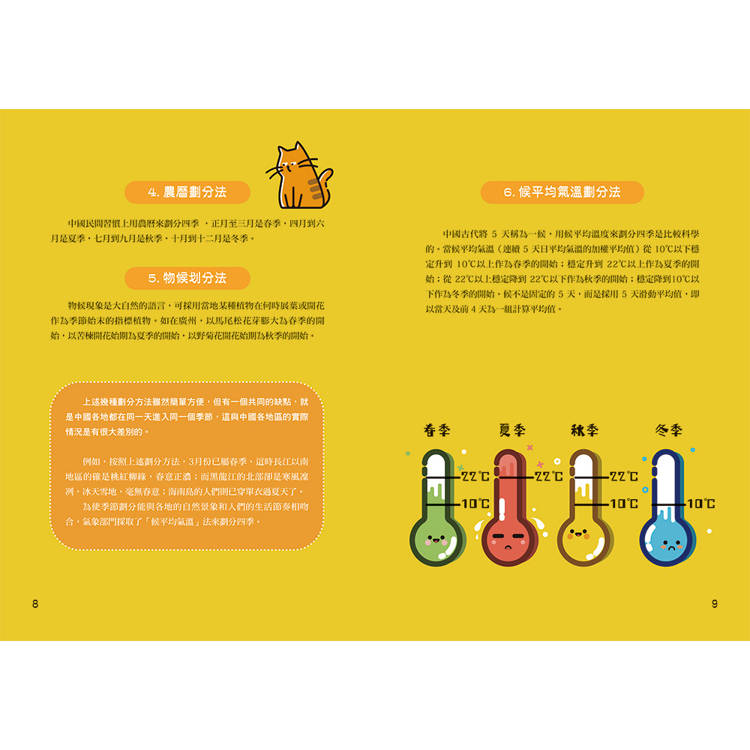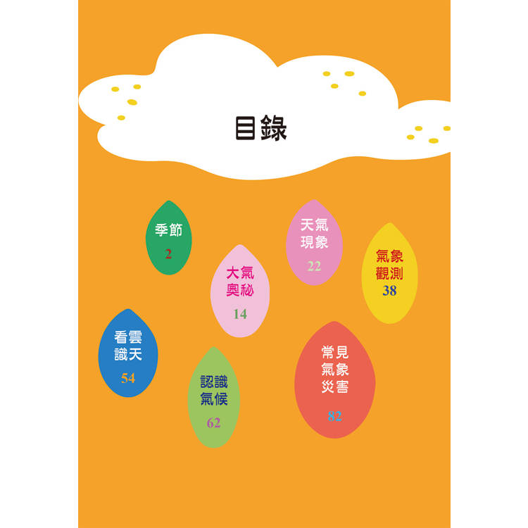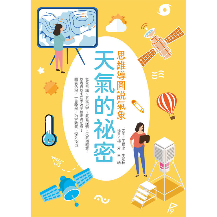 這是一本內容活潑、資訊豐富的氣象科普書。從不同角度帶領讀者看氣象、學氣象、用氣象,以嶄新的表達方式,把氣象知識變得輕鬆又有趣。書中以春、夏、秋、冬四季為主線,串聯起天氣常識、常見氣象災害、天氣預報的誕生,以及人類探索氣象的故事。透過深入淺出的文字與生動圖畫,將繁複的氣象知識化為一幅幅易懂的畫面,讓原本枯燥的科學變得生動多彩,帶領讀者在閱讀中發現天氣的奧祕。