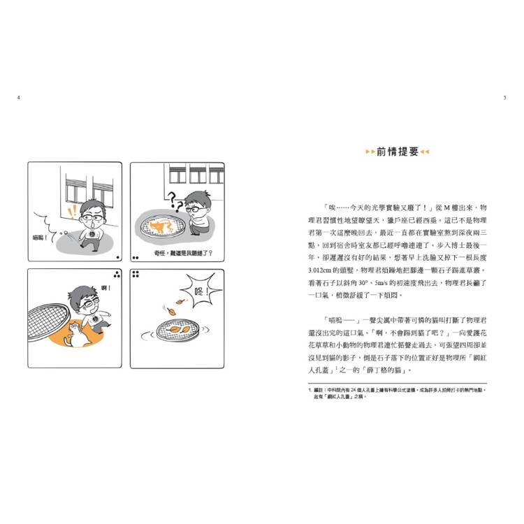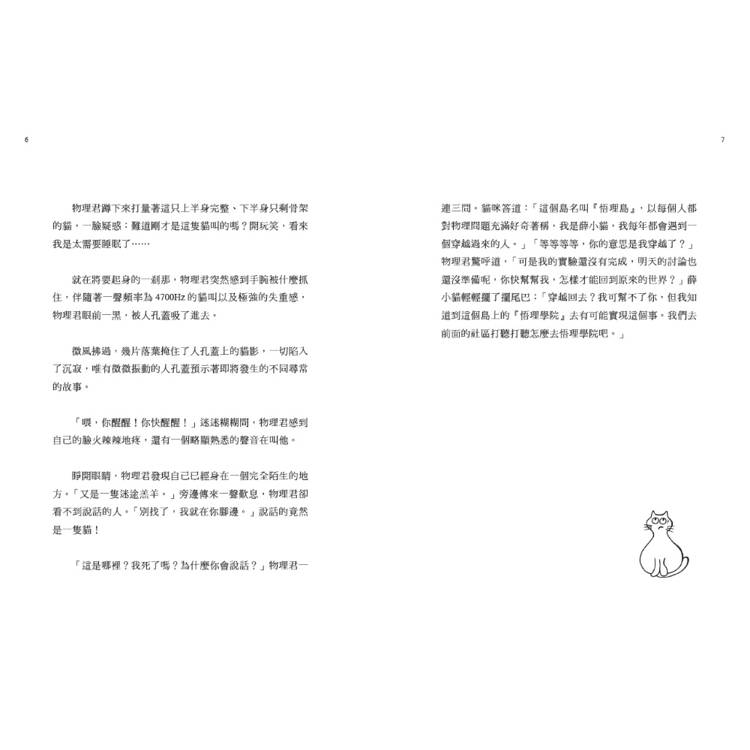 睜開眼睛,物理君發現自己已經身在一個完全陌生的地方。「又是一隻迷途羔羊。」旁邊傳來一聲歎息,物理君卻看不到說話的人。「別找了,我就在你腳邊。」說話的竟然是一隻貓!