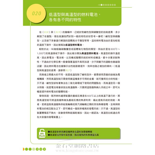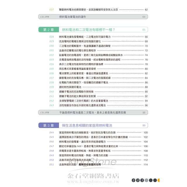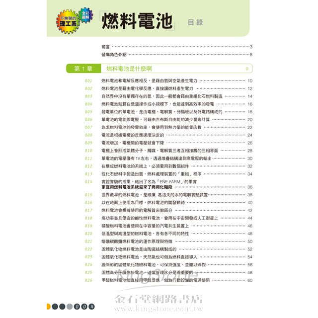 全方位燃料電池入門書:本書以燃料電池為中心,以簡單明瞭的方式,解說其運作方式與特徵,還有與電池的相異之處、種類和運用領域,以及發展歷史與開發動向