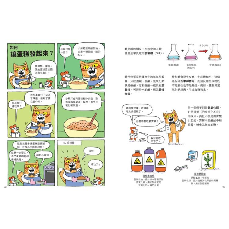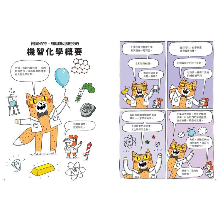以討喜角色對話推進知識,透過漫畫與圖解,將關鍵化學概念藏在笑點裡,讓孩子在「看故事」的狀態下,無痛吸收重要觀念。