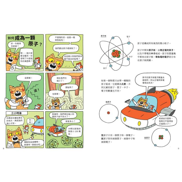全書以孩子最常問的「如何做到?」為主軸,像是如何做出鑽石?如何測出恐龍的年紀?如何讓東西漂浮、產生臭味或避免滑倒?從生活情境與趣味提問切入,帶領讀者一步步認識原子、分子、反應與物質變化,理解抽象概念。