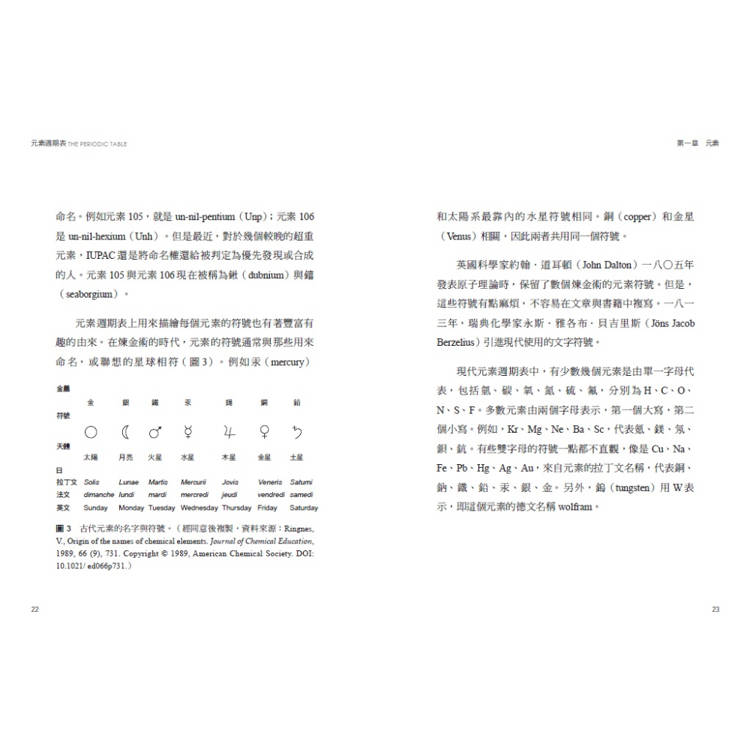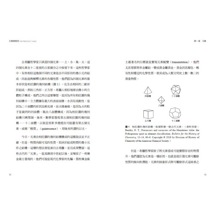 檢視元素週期表前,我們先考慮住在裡面的成員──元素。接著我們快速看看現代的元素週期表和某些元素週期表的變體,然後從第三章開始探討其歷史,說明當今的理解如何演變而來。