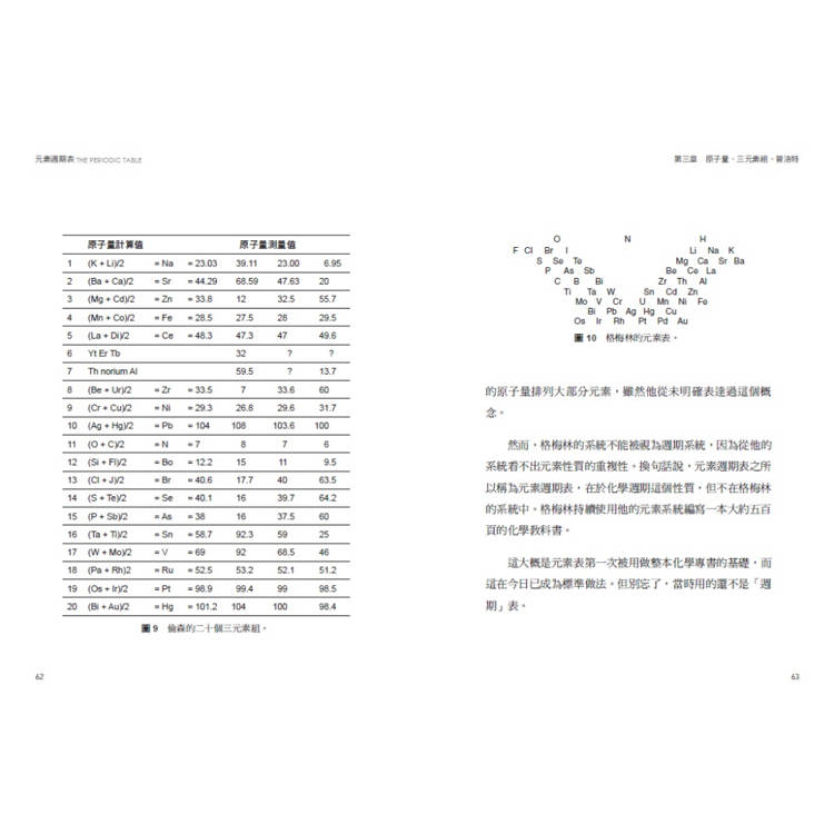 並收錄了包括1871年門得列夫發表的第一版等多種具代表性的週期表版本,