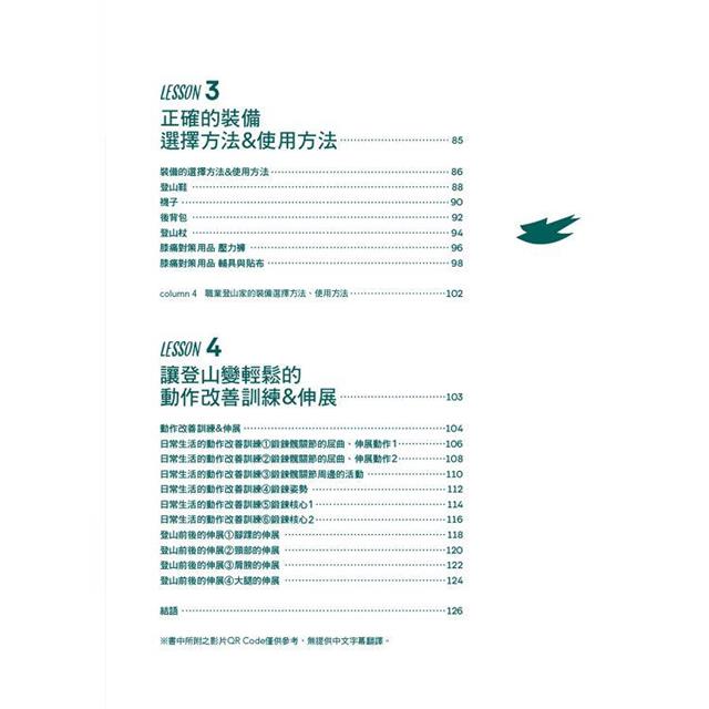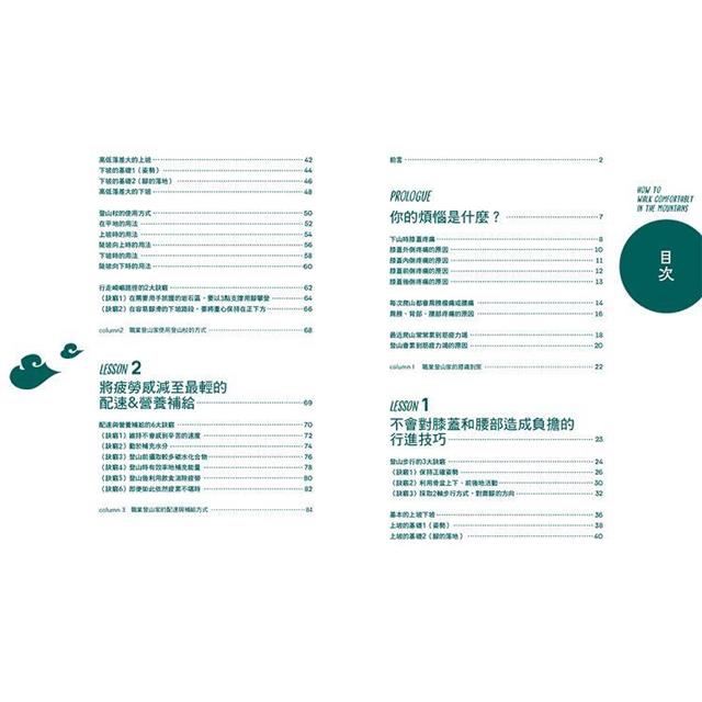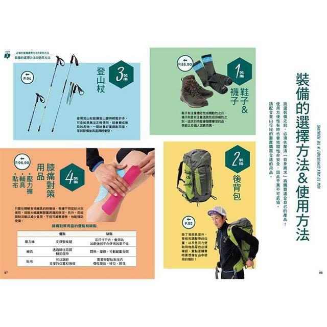本書從「不會對膝蓋和腰部造成負擔的步行技術」,「配速&營養補給」、「正確的裝備選擇&使用方法」,到「讓登山變輕鬆的動作改善訓練&伸展」,全方位介紹登山所需的各項實用知識,即使是登山新手也能快速瞭解,用最正確且不易受傷的方式輕鬆攻頂!