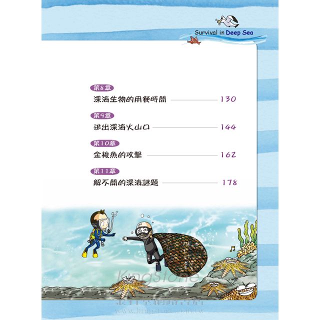 因為智悟的潮間帶報告寫得有聲有色,海洋研究所的孔博士便邀請智悟一起參加海洋的探查之旅,並在熱帶海洋的珊瑚礁浮潛享受歡樂時光。只可惜好事多磨,打算靠著一艘破船橫渡珊瑚島群的皮皮,以及跟著潛水艇菊石號一起被直昇機運送過來的凱伊就這樣出現在智悟眼前了。這三個人在歷經病毒與人體後,現在竟然又在深海相遇!皮皮因為嫉妒智悟,想竄位成為求生專家,但智悟怎麼可能視若無睹呢?就在此時,以希波克拉底技術製作完成的菊石號終於要試航了,究竟菊石號的試航能否平安結束呢?跟著菊石號一塊下水的智悟跟皮皮又躲到哪去了呢?智悟一行人不管到什麼地方,總是有精采萬分的狀況層出不窮,就連這一次的深海也不例外呢!