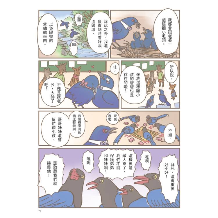 擬人化的描述更容易讓讀者有共鳴,玉子的呈現方式,讓這些知識不再是冷冰冰、艱澀難懂的「課文」,能夠更貼近野生動物的實際生活。