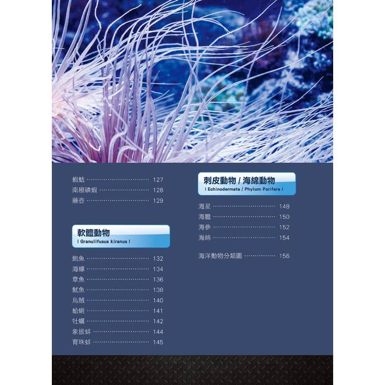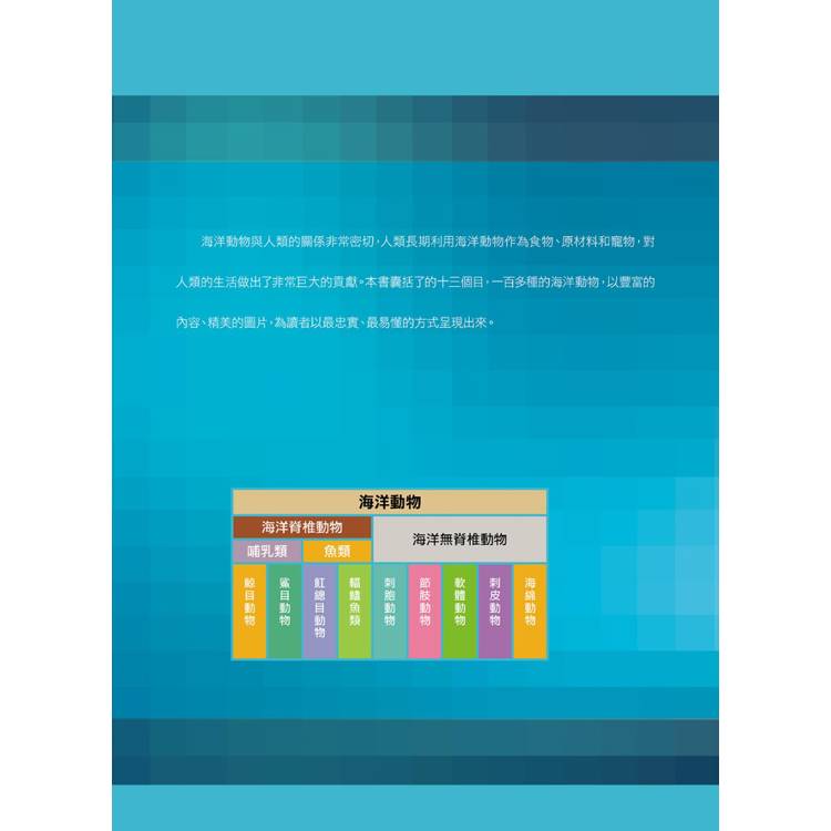 海洋動物與人類的關係非常密切,人類長期利用海洋動物作為食物、原材料和寵物,對人類的生活做出了非常巨大的貢獻。本書囊括了的十三個目,一百多種的海洋動物,以豐富的內容、精美的圖片,為讀者以最忠實、最易懂的方式呈現出來。
