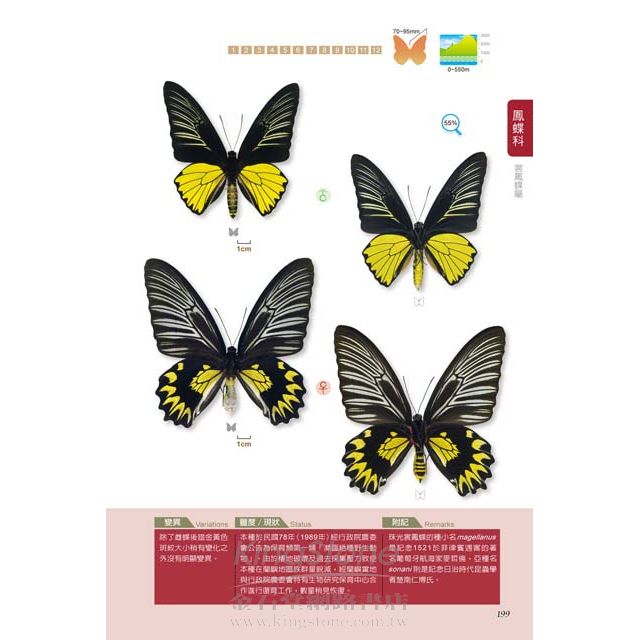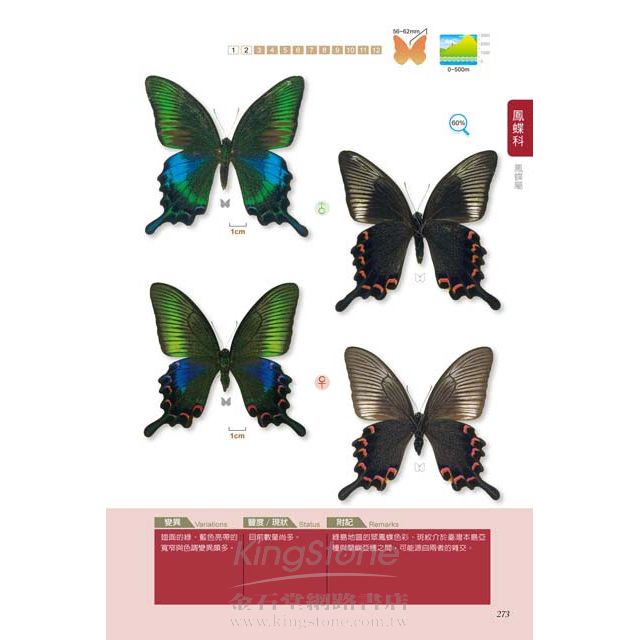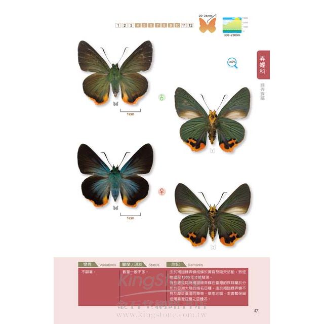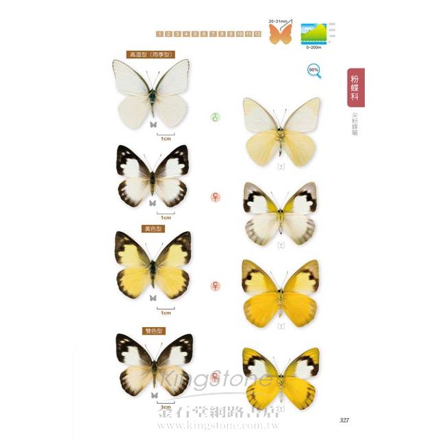 ◎本書收錄弄蝶、鳳蝶、粉蝶,當中包含許多疑問種與偶產種
