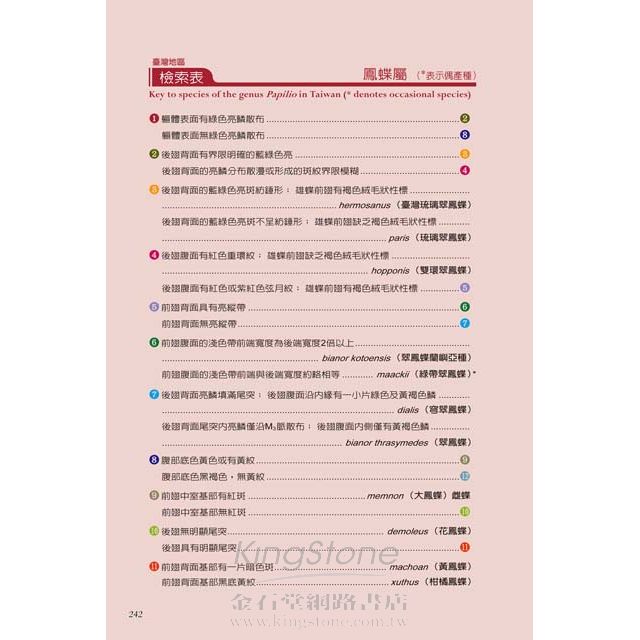 ◎提供專業檢索表,並於每一蝶種照旁附註尺標,讓您快速鑑別物種。