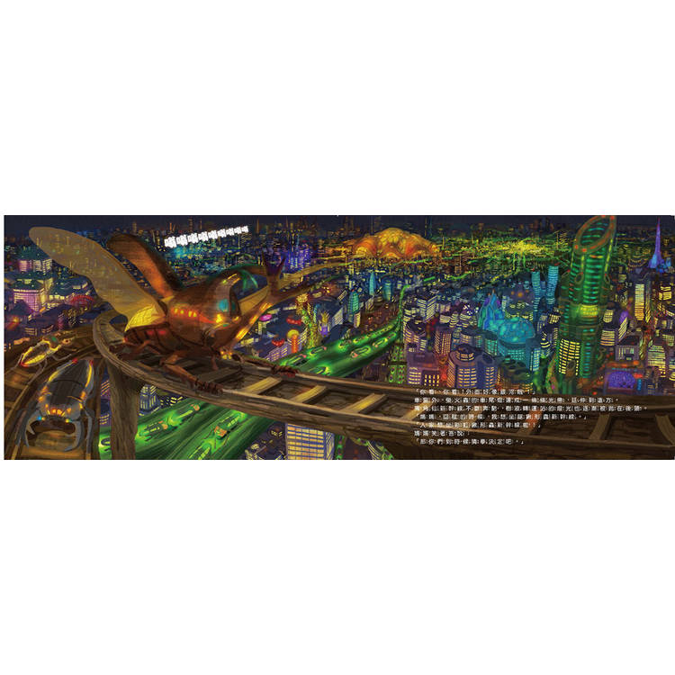 一路上轉乘飛越樹梢的斑透翅蟬輕軌、深入地底的蚯蚓地下鐵,每一種都是昆蟲變身的交通列車!旅途中驚險不斷:兩輛螳螂特快車正面對決阻擋了交通,只得改搭地底電車;在黑暗中蠕動前進時,緊急按鈕的燈光突然亮起!