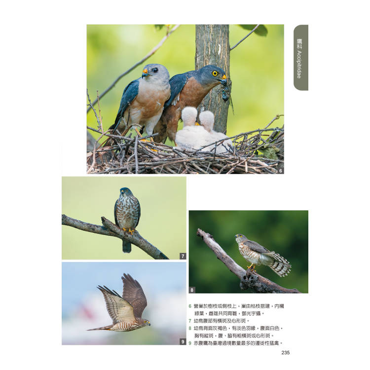 由於多數猛禽僅於春、秋過境期短暫停留,其在繁殖地與度冬地的換羽過程與樣態在臺灣難得一見,增加辨識困難度,本書盡可能呈現猛禽各階段完整的樣貌 ,透過精彩影像,帶您深入了解猛禽的自然生態行為。