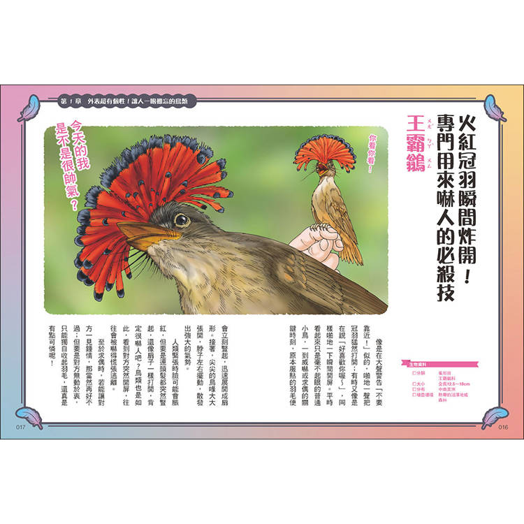 • 兒童閱讀 → 圖像豐富、內容生動,讓孩子輕鬆認識世界奇特鳥類。