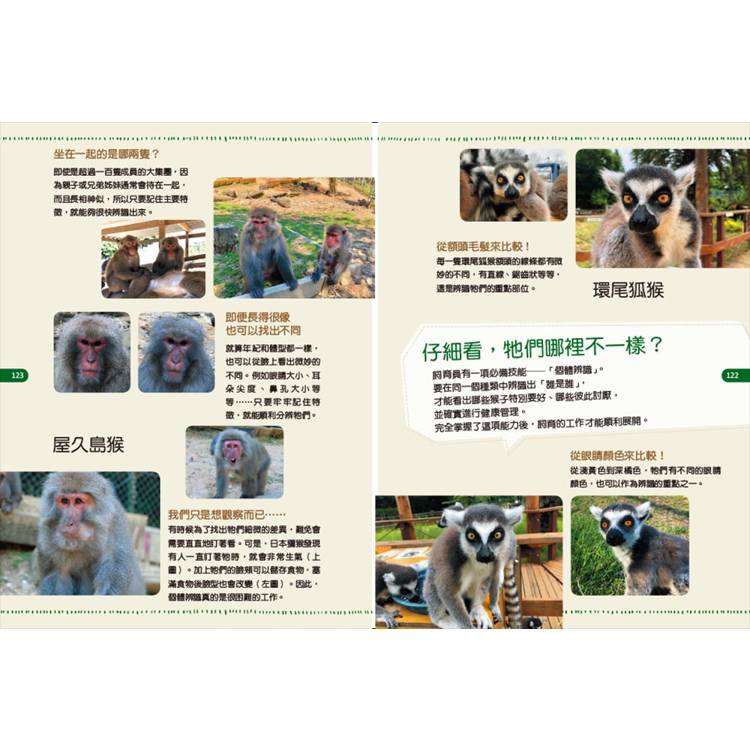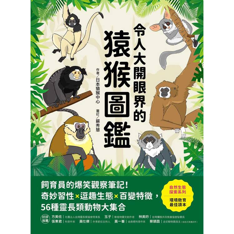 本書的插圖、照片和文字,都是由每天照顧猿猴的飼育員共同完成!不僅生動描繪猿猴特徵、提供園區內的生活照,也結合多年研究觀察的「猴知識」,帶你從飼育員一天,了解如何替猿猴蒐集食物?打造原生環境?做好預防疾病措施等,深入了解這些與人類最相似的可愛動物。