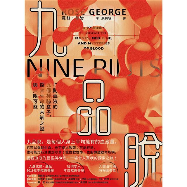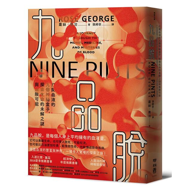 蘿絲.喬治的《九品脫》穿越古今,從古代的放血技術,一路談到現代用以追蹤血液傳染病的血液監控系統。此外,也介紹了二戰期間首創大規模捐血機制的輸血教母,發明衛生棉機、嘉惠發展中國家女性的「護墊俠」。全書不僅專注眼前、探究獲利驚人的血漿輸注生意,同時也展望未來,在研究人員的努力下讓合成血液普及。