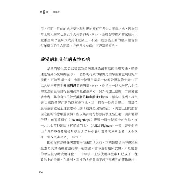 本書將告訴你關於維生素C的爭議是如何甚囂塵上,以及證實分子矯正療法的價值證據越來越多的故事。在科學與醫療的發展史中,維他命C背後有著無盡的政治角力與經濟鬥爭,其在人類的進化史上也擔綱著舉足輕重的角色。