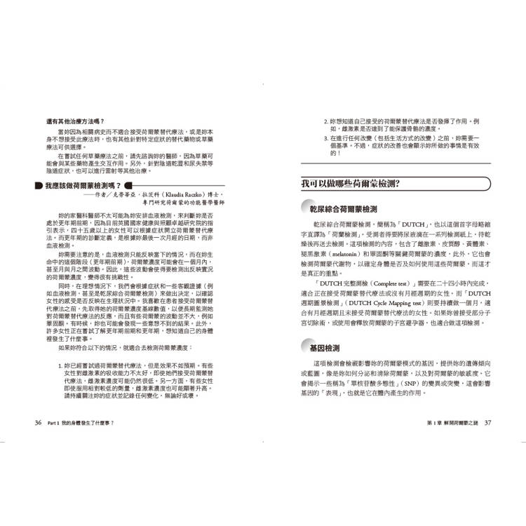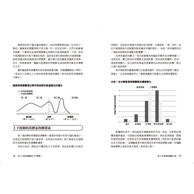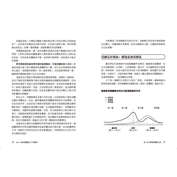 .在更年期前期,荷爾蒙濃度可能會在一個月內,甚至月與月之間波動,相關症狀也會隨之改變。隨著妳身上的荷爾蒙不斷變化,這本書將是妳可以不斷回顧的指南。