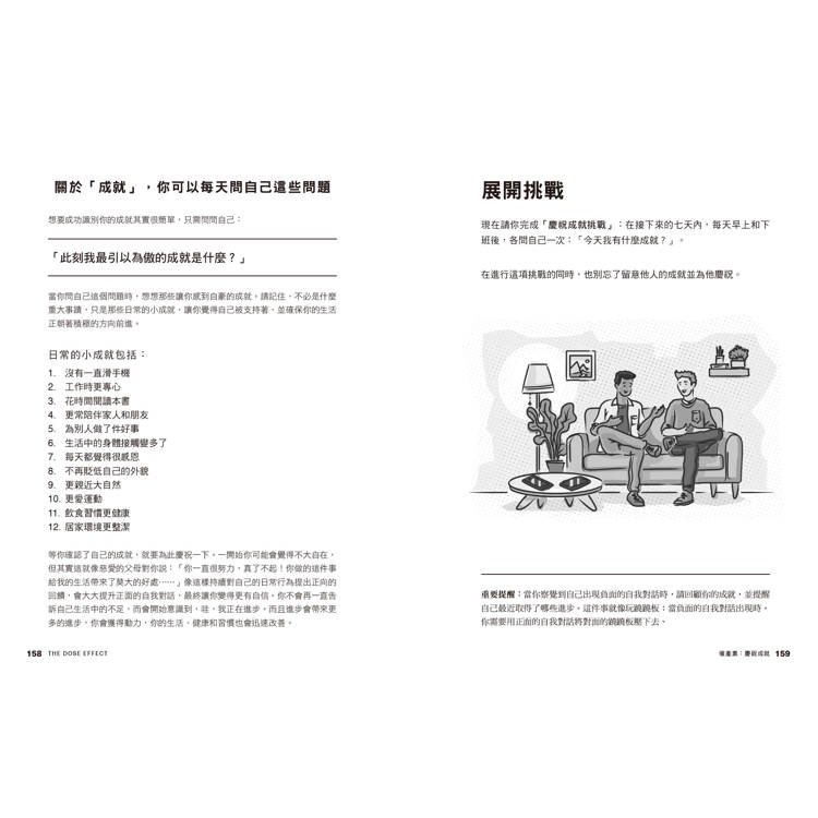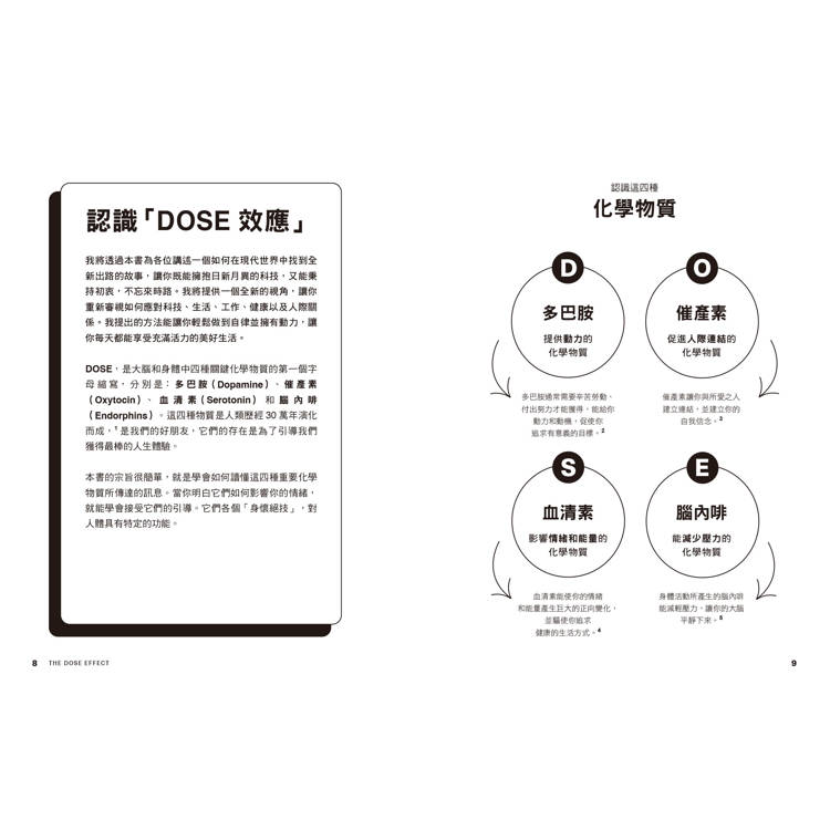 深刻了解四種關鍵大腦化學物質「多巴胺、催產素、血清素與腦內啡」的作用,以及導致它們提升和降低的原因,可以幫助我們改掉不好的生活習慣。本書提供了許多實用可行的技巧,幫助你提升這些化學物質的濃度。──《紐約郵報》