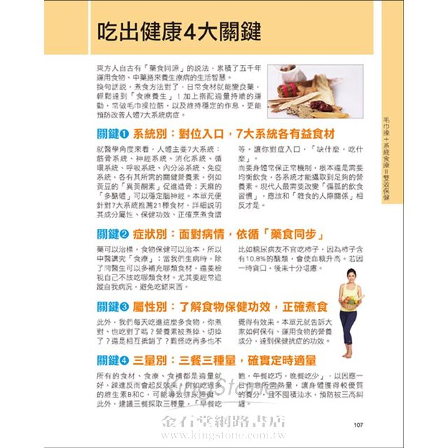 2011/05/30 有研究指出,人類的大腦和肺20歲就開始衰老;女人最關心的皮膚則是25歲;骨骼是35歲老化;眼睛、心臟、血管、牙齒則是從40歲開始走下坡……雖然每個人都會老,但是《不老力》要教你不怕老!《不老力》以清朝人瑞、養生家曹庭棟的健康名作《老老恆言》為基礎,並分享南朝以降中國名家的私房養生秘訣,輔以現代中醫的保健觀點,分享日常起居便能做到的長生祕方,內容細緻、平實,而且簡便易行。 比方說:晚上看電視、跟家人聊天的時候,盤坐並用手心的勞宮穴搓搓腳心的湧泉穴(左手搓右腳、右手搓左腳喔),常做可以改善失眠的症狀。想要氣血暢通少感冒,建議「吃得好,不如吃得身體微微發熱」。三不五時用搓熱的中指在鼻樑兩邊上下摩擦20遍,有助於潤肺防鼻病。如果煩心心痛、憂鬱、幻想有人從後追趕而感到恐慌,不妨可以常常做以下動作:每天雙手左右向外平舉拉伸(掌心朝外),原地踏步5~7次。 《不老力》的健康秘訣,集結3000年養生智慧的精華,涵蓋行、住、坐、臥到休閒娛樂各層面,有許多不只適合年長者使用,現在一般年輕人也可以拿來參考,可以說一輩子都相當受用,不論是買來犒賞自己、送父母&阿公阿嬤都是「揪甘心」的禮物! 編按:《不老力》6/8出版。