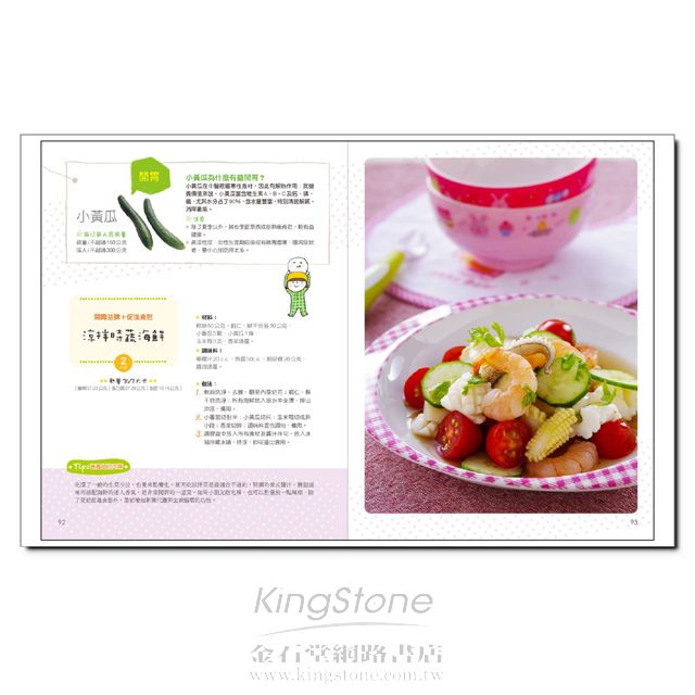從各種料理中聰明變化菜色,讓整道食譜呈現色香味俱全外,還能點綴出童趣,讓小朋友第一眼就喜歡,進而食慾大開。作者並將平常小孩最不喜歡吃的 食物,巧妙地隱藏在食譜中,避免孩子因挑食而營養不均衡。全方位的孩童食譜,你一定要擁有一本,讓你輕鬆解決惱人的餐桌大戰!