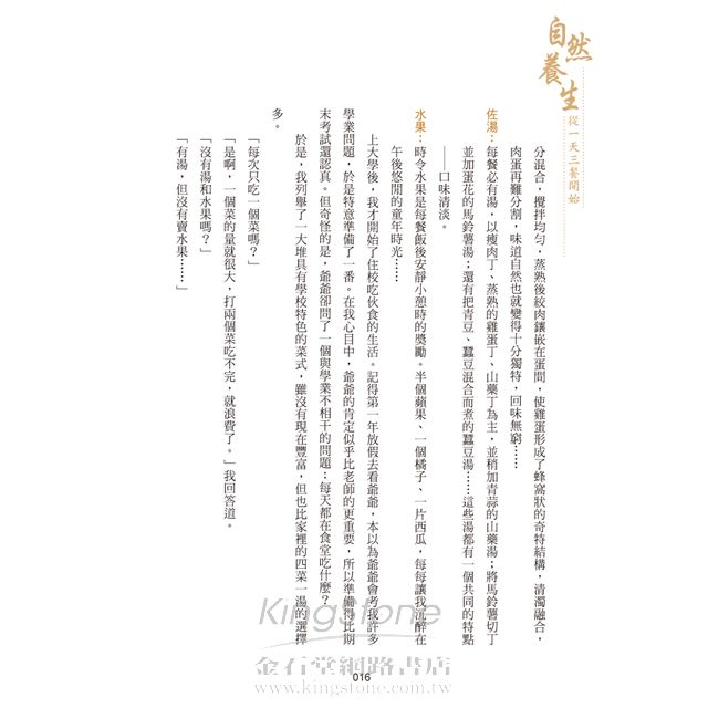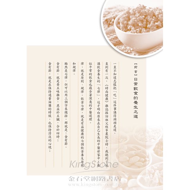 不僅在餐館裡點菜時可以留意做到,有心者甚至在家裡煮食也可以貼近健康,可以說,這也是一本讓你完全更新健康食療觀的讀本!