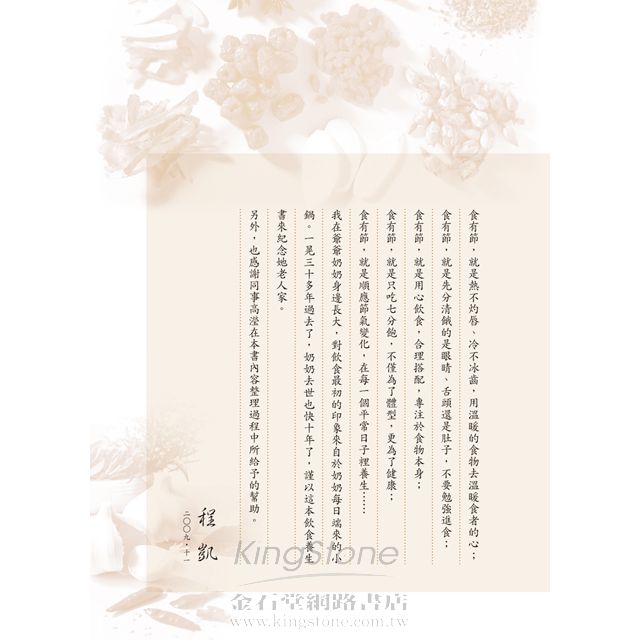 我在爺爺奶奶身邊長大,對飲食最初的印象來自於奶奶每日端來的小鍋。一晃三十多年過去了,奶奶去世也快十年了,謹以這本飲食養生書來紀念她老人家。
