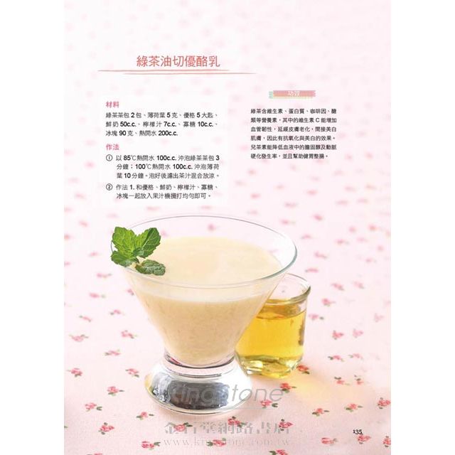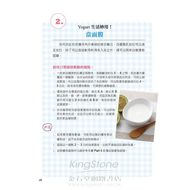 最近開始掀起了一股優酪乳保健養生的熱潮,市售優酪乳的品牌與口味也愈來愈多,有些還標榜低脂、無香料、無色素等,但難免讓人對食品添加物產生莫大的疑慮。如果想要喝到100%純天然、零負擔的優酪乳,就需要自己DIY。本書以圖解示範最簡單的優酪乳製作方式,並精心設計了一週七天排便力UP優酪乳食譜組合和優酪乳飲品。除此之外,詳列了你意想不到的優酪乳生活妙用,讓你自己在家也可以動手做面膜、去角質霜、護髮乳……。所有你想知道有關優酪乳的Q&A,也都一一解答,是喜愛優酪乳的你,養生保健最實用的選擇!