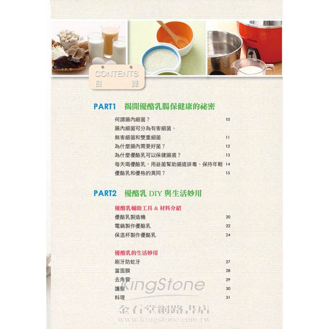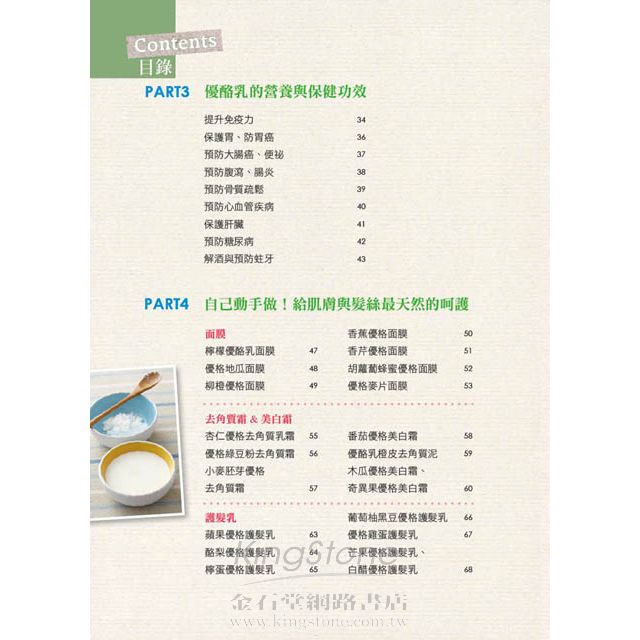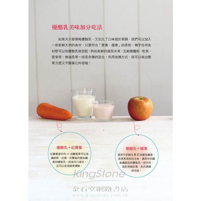 有很多人對優酪乳應該還是有一連串的疑問,本書整理出對優酪乳常見的疑問,以深入淺出的方式為你解答,讓你在喜愛上優酪乳口味的同時,又能兼顧營養與健康。