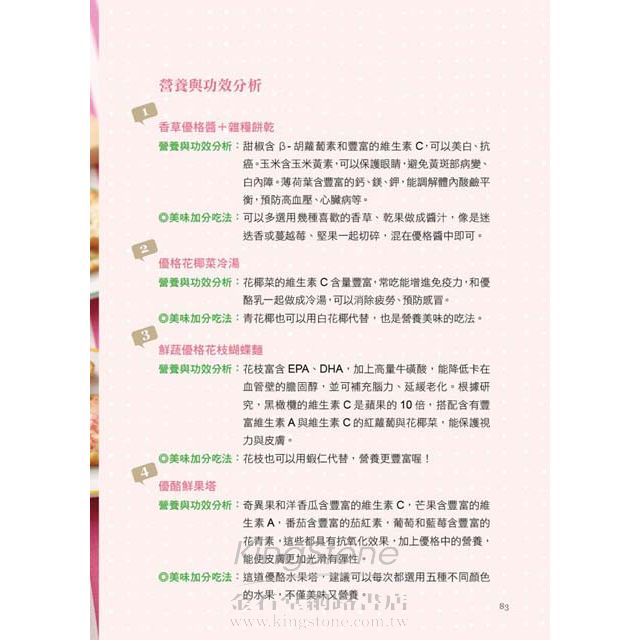 精心設計了7天淨化腸道壞菌的優酪乳食譜,用入菜的方式做出千變萬化的料理,前菜+主食+湯品+甜點 一應俱全,如此持之以恆,就可以達到淨化腸道,美容瘦身的效果!