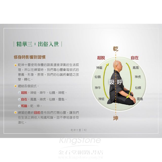 ◎練習乾坤十靈,可幫助我們發展從頭到腳的能量網;儲存身體能量轉化成心靈能量,令我們由修煉身體進而改善心靈。