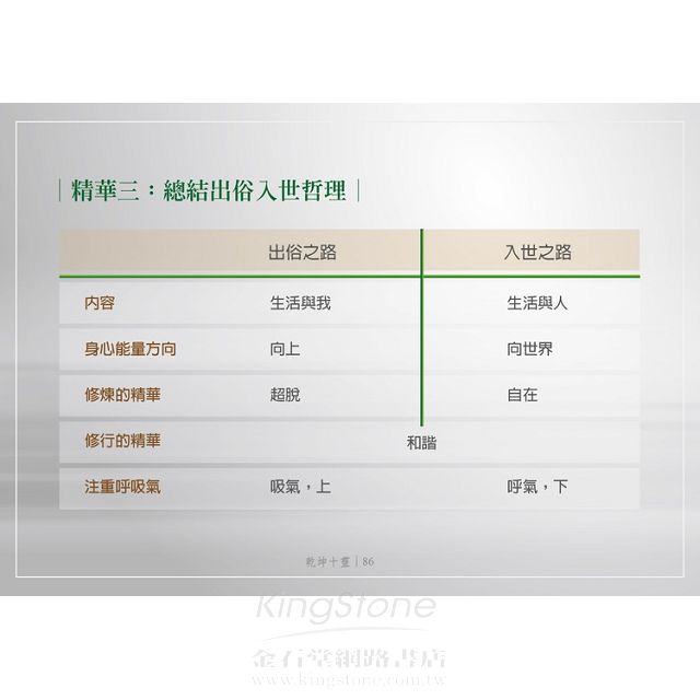 精華三:出俗、入世的動力,賴循環能量的運行。能量上升幫助我們出俗,能量轉化使我們入世;除了我們自己之外,也能使我們幫助別人出俗、入世。