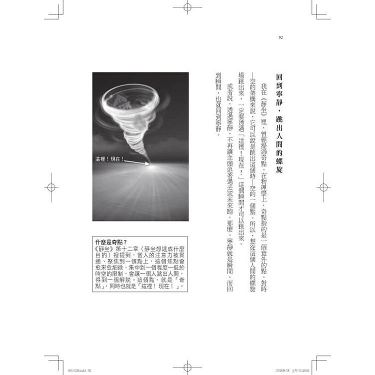 活在這個瞬間,又不被這個瞬間干擾、限制。我們不再以為這個瞬間就等於一切,而能認出那不過是整體生命的一小部份。