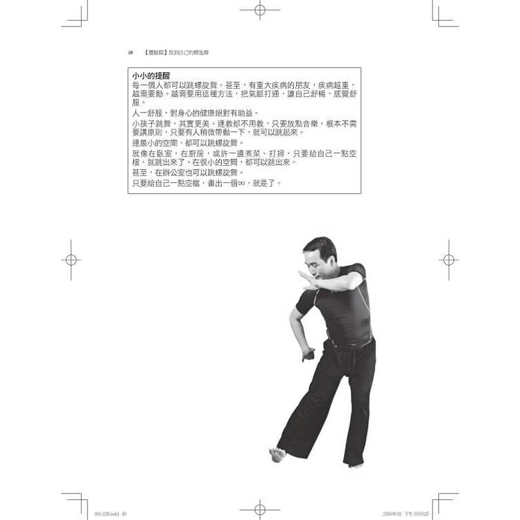 正因為那麼簡單,每個人跳的螺旋舞都不一樣。比如說,有些人身體僵硬一點,可以從小一點的動作或上半身開始畫螺旋,慢慢投入,螺旋動力會愈開展愈大,身體自然地跟著音樂表達一切。